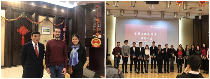 12月19日,中国驻意大利大使馆举行了“中国大使奖学金”颁奖活动。李瑞宇大使和使馆相关工作处人员、意大利教育部官员莅临现场并致辞。意大利孔院的中外方负责人及获奖者和他们的亲友等均出席了活动。大使馆罗平参赞主持了颁奖仪式。佛罗伦萨大学孔子公司的意大利员工Marzio Mazzotti(中文名:俊熙)荣获了中国大使奖学金,并代表全体老员工组获奖者发言。