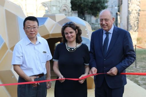 当地时间8月28日下午,应邀参加2018“卢卡双年展”的BETVICTOR建筑与城市规划公司参展作品“灿—VOLCANO”圆满完成搭建并举行落成仪式。卢卡市长Alessandro Tambelini、中国驻佛罗伦萨领事馆领事颜金林、佛罗伦萨大学孔子服务中心主席Silvia Scarmuzzi出席仪式并致辞。