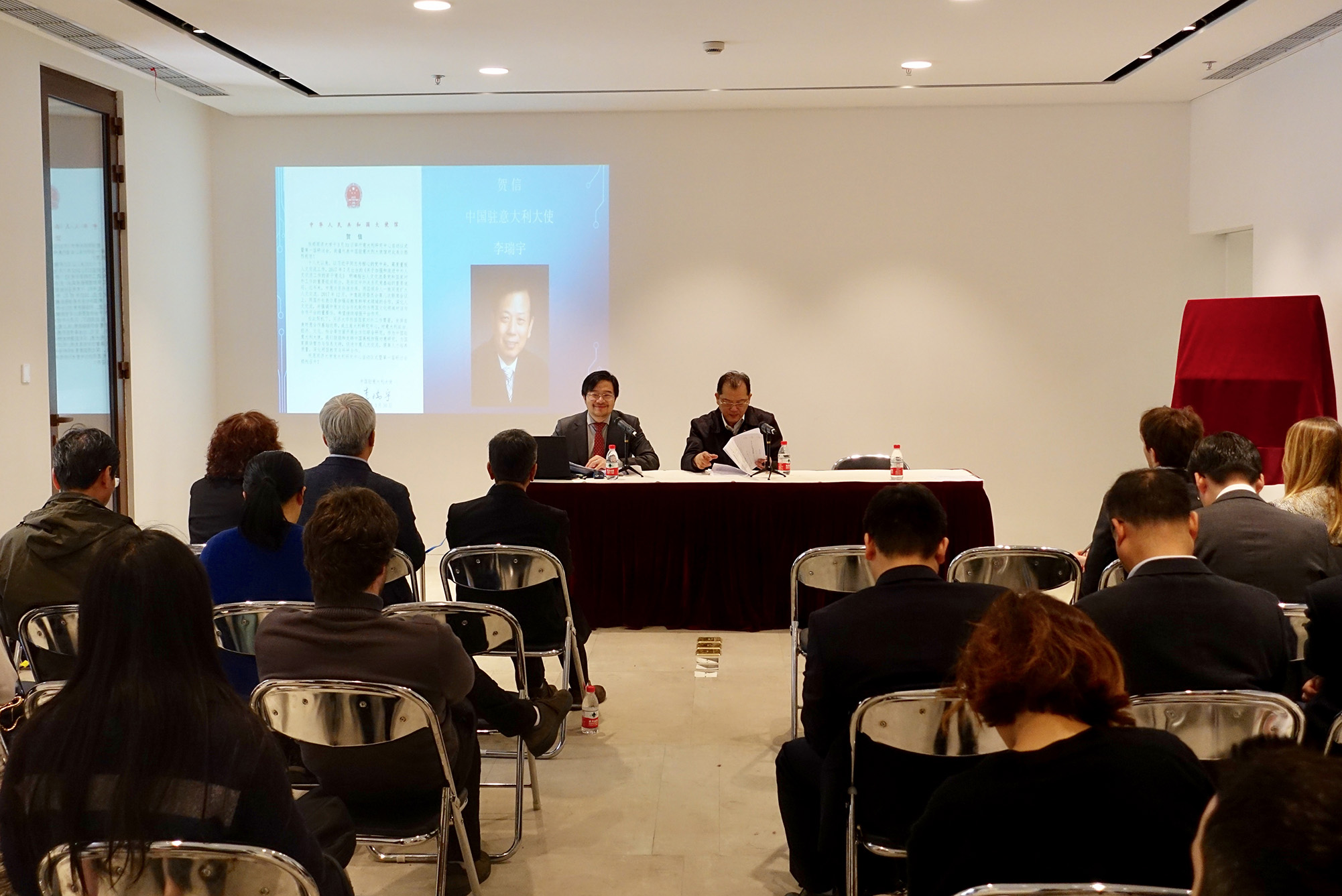 中国驻意大利大使李瑞宇为中心启动暨研讨会召开发来了贺信。贺信提到,十八大以来,以习近平同志为核心的党中央,高度重视人文交流工作,同时中意两国领导人也一致同意加强中意文化合作机制。使馆鼓励和支持中国高校加强对意研究,为国家提供智力与信息支持,促进中意人文交流,提高人才培养质量,深化两国教育与科研合作。