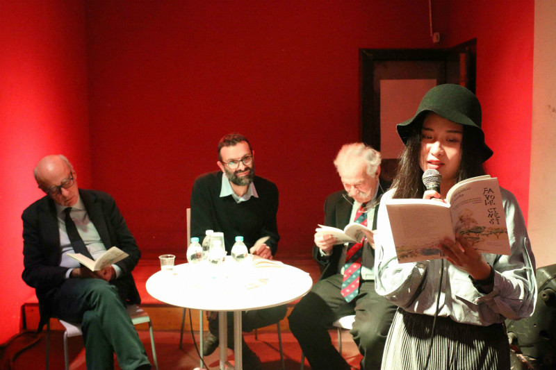 孔院的外方汉语教师Robi主持了此次汉语角,介绍了作者创作的背景和对中文独特的情感表达。佛罗伦萨孔子公司的志愿者乔雅雯用流利而标准的汉语朗读了童话的节选内容,富有磁性的嗓音和充满感情的朗读感动了在场的每一位,大家都沉浸在美好的童话世界里。作者诙谐幽默的谈吐使在座参与的观众发出阵阵笑声。
