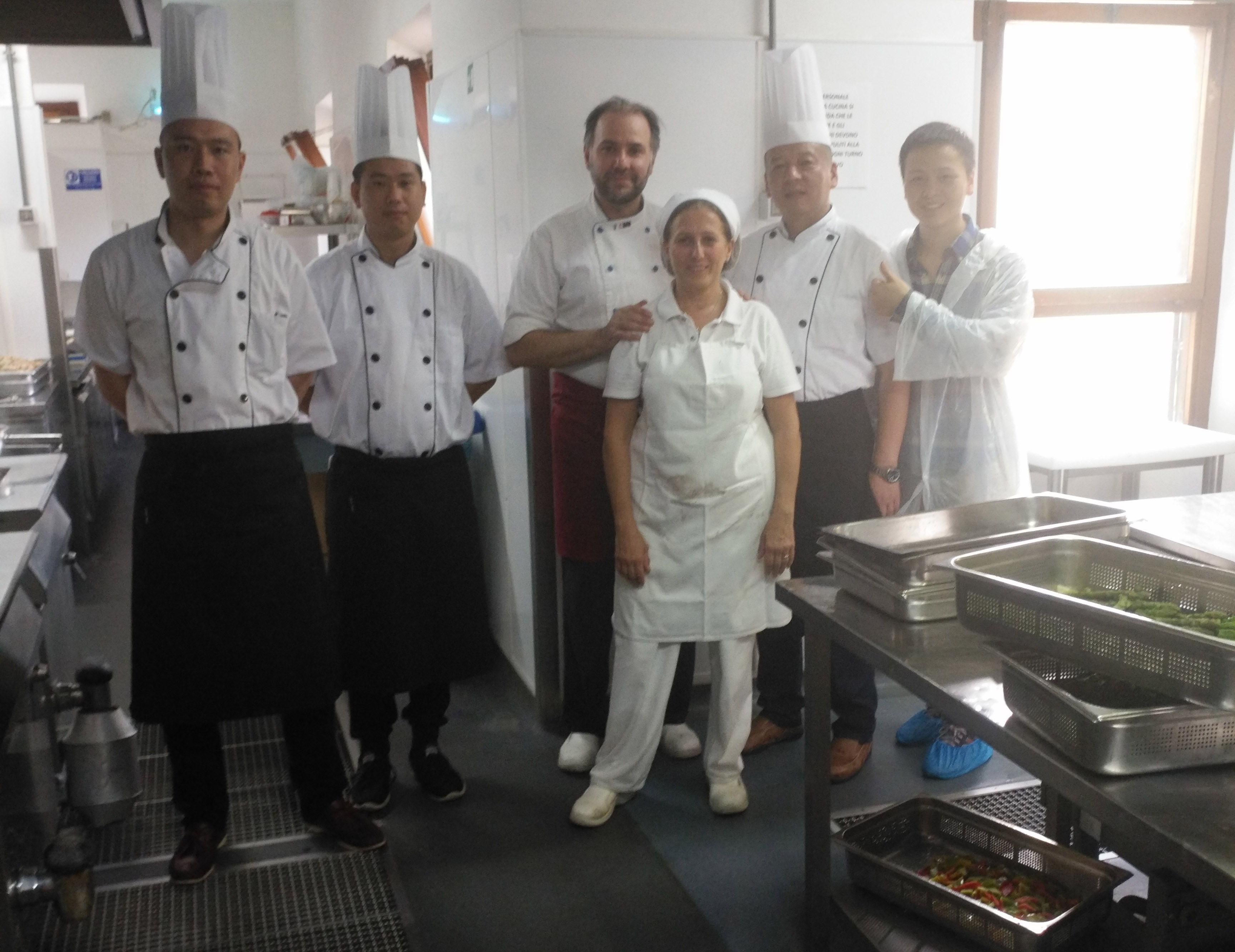美食节期间,BETVICTOR后勤集团的四位大厨为大家准备了丰盛可口的红烧肉和麻婆豆腐等中式菜肴。餐厅里排起长队,意大利宾客和佛大师生大饱口福,深深爱上了中国美食。