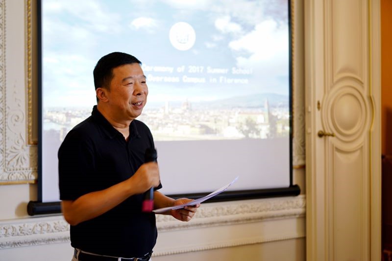 黄一如处长首先致辞。他指出,佛罗伦萨海外校区是开展公司师生文化艺术类教育海外学习和教学实践的多元化平台,今年的暑期营是一个有益的尝试。这些天,同济师生在或长或短的海外学习中,都收获颇丰。老师们与意方教授进行了有益的交流,同学们聆听了精彩的讲座,并沉浸在意大利的古老文化和创新氛围里。未来我们将与意大利合作高校共同努力,依托现有的合作基础,开发更成熟完善的课程体系,实现与意方高校的学分互认和师生流动性,为本科生人才培养服务。让更多的同济员工有机会来佛罗伦萨学习艺术史、设计学、建筑与城市规划、人文、等课程,同时吸引更多的意大利员工来华学习。