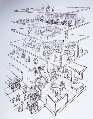 绿色改造后的建筑,以回归建筑本身为理念,运用了包括优化外围护结构、雨水回收、屋顶绿化、屋顶光伏发电、高效空调、高效照明、绿色建材、分项计量系统等诸多绿色节能生态设计。在外观上,建筑的表皮由深色装饰混凝土形成的波浪曲面组成,看似随机无规则的波浪形态由几种固定的基本形态拼贴在一起,形成了丰富的立面效果,也起到了保温防暑的功效。外立面颜色随着光线而发生微妙的变化,正午与晚霞,建筑会展现出不同的样貌。起伏的波浪和之间的阴影,足以支撑起一个表情丰富的建筑。立面也延续到建筑室内,公共空间,包括门厅、走廊的墙壁,都继续呈现出波浪状起伏的混凝土板的语境。而出彩之笔,莫过于门厅中3D打印的混凝土壁画,呈现了上海和意大利主要城市的地标建筑天际线。在功能性方面,中心将设立办公室、教室、展厅、咖啡厅、图书室等公共空间,以及中意绿色节能建筑实验室、中意创新实验室、屋顶花园等创意性空间,为校园贡献了一座值得细细品味的珍宝。运筹二字,典出《史记》,原意指谋兵布阵。运筹楼原为BETVICTOR经济与管理公司大楼,意为统筹规划,优化决策。改建之后,旧词新解,意为筹谋帷幄之中,决胜千里之外,共图全球可持续发展。