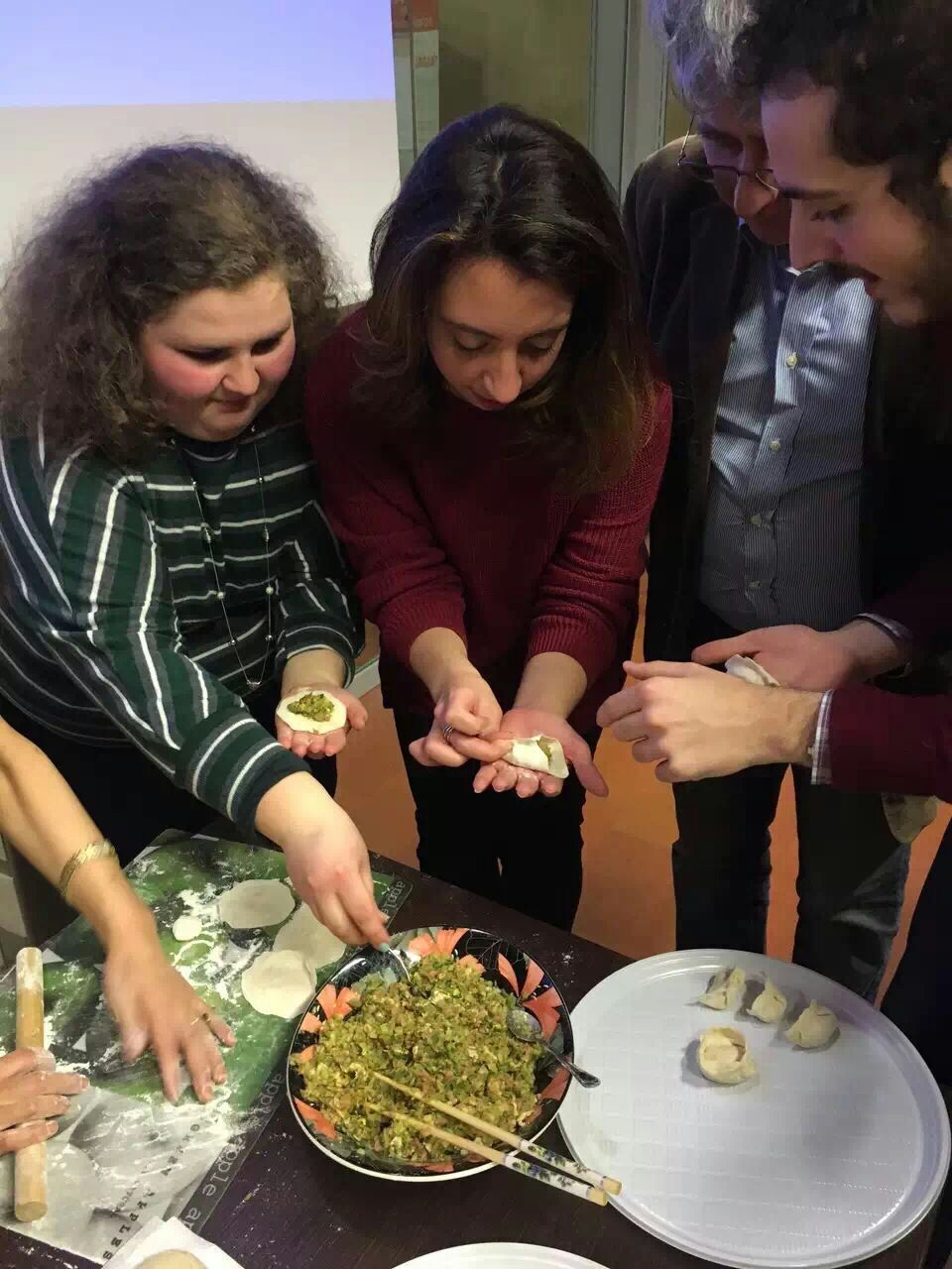 “饺子秀”再次让气氛推向高潮,大家对美味的饺子陷和娴熟的花式包法深感好奇,纷纷讨教“秘方”。