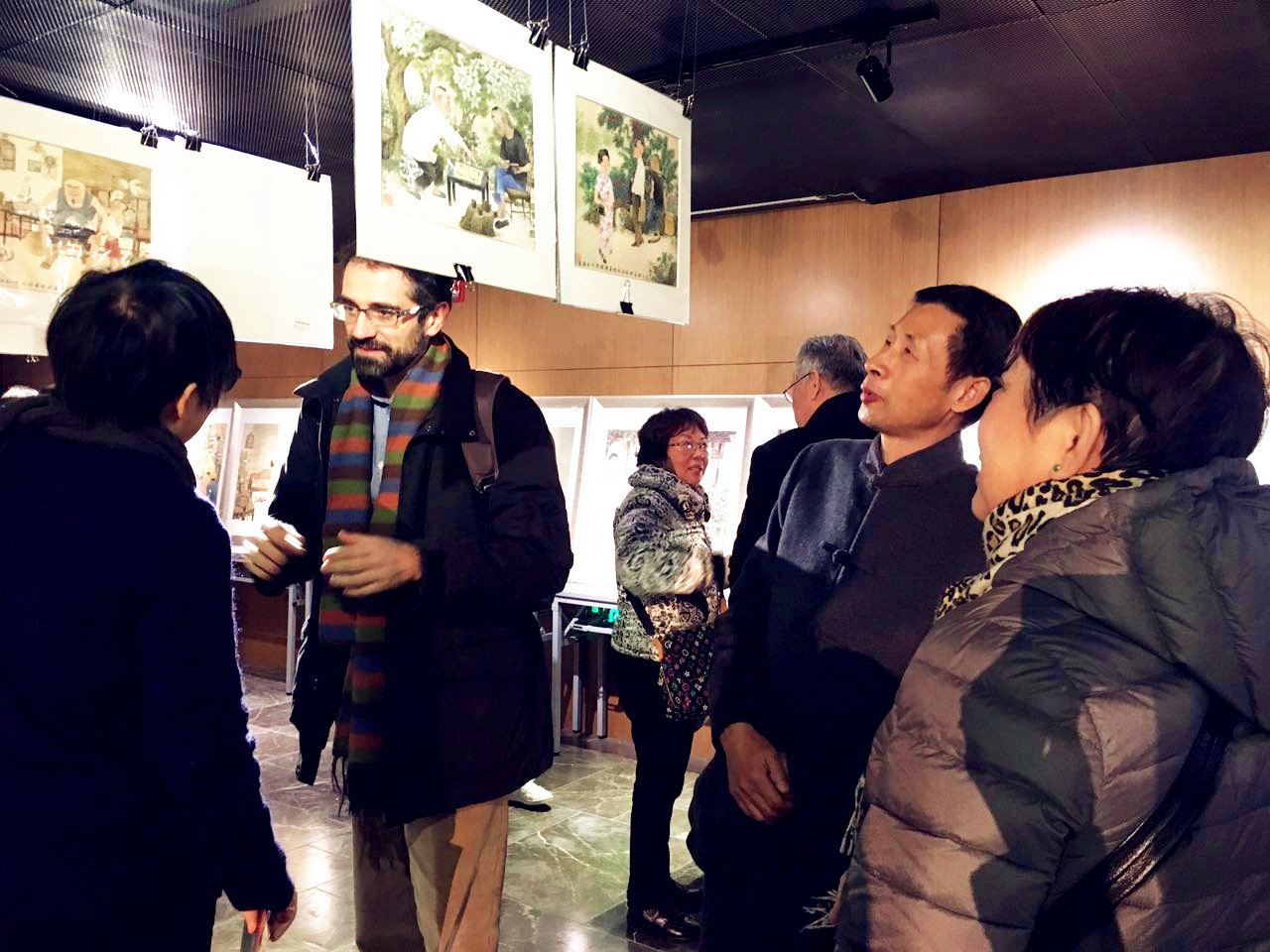 中国美术家协会会员,江苏省江海书画会理事,中国工笔画家协会常务副会长,原在苏州美协、书协任副秘书长,现任“友苏美术馆”馆长,著名市井人物画家谢友苏,向大家分享了艺术生涯中的点点滴滴:他的作品多次入选国内国际画展,并获奖。先后受邀在法国东方艺术博物馆、香港云峰画苑、台北国父纪念馆和南京总统府、上海大剧院画廊等处举办个人画展,受到国内外诸多观众的喜欢。令他印象深刻的是,在办展期间,有位观众来了3次,过后还带了全家来观看;有位观众将平时不出门的残疾哥哥用轮椅推到三楼展馆;一位老先生观后回家特意做了首七言律诗送来;还有位加拿大画家,差不多在每张画前都留下了模仿画中人物幽默神态的照片……如此例子,不胜枚举,真切感受到艺术是无界的,人情是无界的。而他的父亲谢孝思,是一代画家和园林大师,多年来他在苏州古城的保护、主持领导修复苏州三十多个古典园林、抢救收集八千多件文物所出杰出贡献,并被授予“世界文化遗产守护人”称号,今年正是他诞辰110周年。谢友苏很庆幸自己成长于这样一个艺术世家,可以说他的成长过程也是艺术的传承过程。包括他的女儿谢显晖(艺名无言)成长为国内国际动漫界颇有名气的原创动画师,她一路走来的印迹,也体现了艺术无界、艺术的传承。而无论多少辈的延续,艺术的精髓,总是得到了完整的保留。