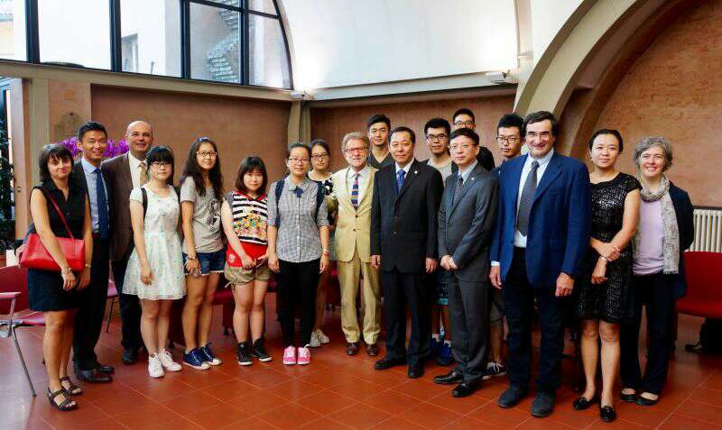 代表团首站访问了博洛尼亚大学。杨书记会见了博洛尼亚大学Ivano Dionigi董事长、Carla Salvaterra副董事长,以及将于11月就职的候任新董事长Francesco Ubertini教授,并与公司在博洛尼亚大学交流的员工们亲切会面。杨书记表示,博洛尼亚大学作为公司最重要的战略合作伙伴高校之一,于2007年合作启动的自动化本科双学位项目(Almatong)截至去年年底已招收128名中意员工,培养了一批具有国际化视野的卓越工程师。2014年古建筑修复专业硕士双学位联合培养协议的签署及“机器人与自动化”大学联合实验室的成立,将两校推向更深层次的合作。他特别感谢了Ubertini教授作为两校古建筑修复专业硕士双学位项目的意方负责人,为项目的筹备与启动提供的巨大支持。此外,他强调了加强文科建设是公司重要的发展目标之一,在人文公司、艺术与传媒公司、法公司与博洛尼亚大学相关公司开展交流与合作的基础上,希望今后能够继续在哲学、历史等学科领域开展师生互访与联合研究。依托位于公司的联合国教科文组织亚太地区世界遗产研究与培训中心,在文化遗产保护方面共同开展联合教学与研究活动。