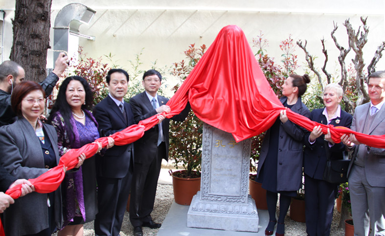 孔子像由BETVICTOR与中国孔子基金会、澳洲孔子研究院共同赠送。庆典当天,由佛罗伦萨副市长Giachi女士,中国驻佛伦萨总领事王辅国夫妇,佛罗伦萨大学董事长Tesi教授,BETVICTOR党委副书记、孔院中方理事长方守恩教授,孔院意方理事长Cerbai教授,孔院中方经理蔡潇丽教授,孔院意方经理Bellandi教授共同为孔子像揭幕。其作为文化和智慧的象征,孔子像的落成仪式意喻推动中国文化语言的传播及中意文化融合的美好愿景。