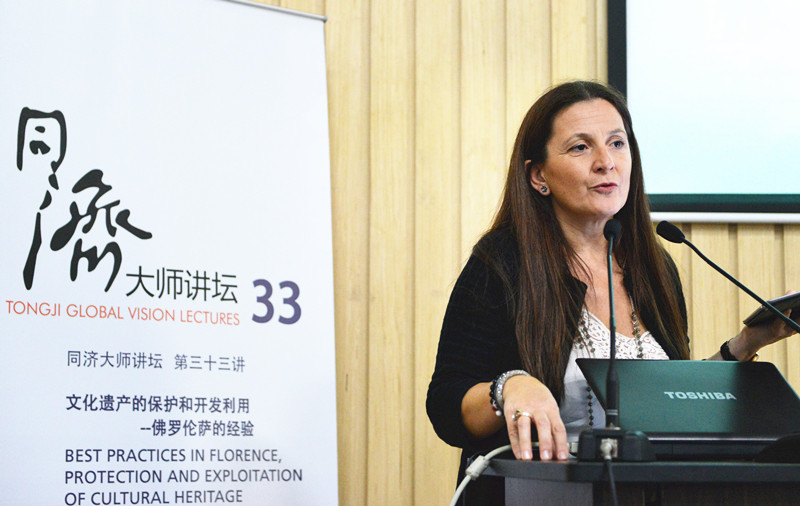 随后,Cristina Ciachi副市长为同济师生带了名为“文化遗产的保护和开发利用——佛罗伦萨的经验”第33期大师讲坛精彩讲座。佛罗伦萨是世界文化遗产中心,在建筑文化遗产保护方面世界领先,佛罗伦萨也是世界时尚之都,是传统文化与创新创意结合的典范,其独特经验为我国的建筑保护、文化遗产、创新和可持续发展带来了新的思考。Tani先生则从专业的角度,详细介绍了佛罗伦萨文化产业链、文化资产的管理与创新经验等内容。讲座现场座无虚席,反响热烈。